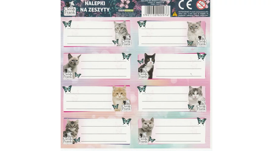 Cleo and Frank cicás füzetcímke, 8 db etikettcímke egy íven